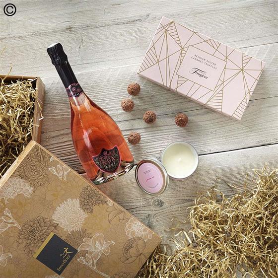 Prosecco Rose, Salted Caramel Truffles and Candle Gift Set